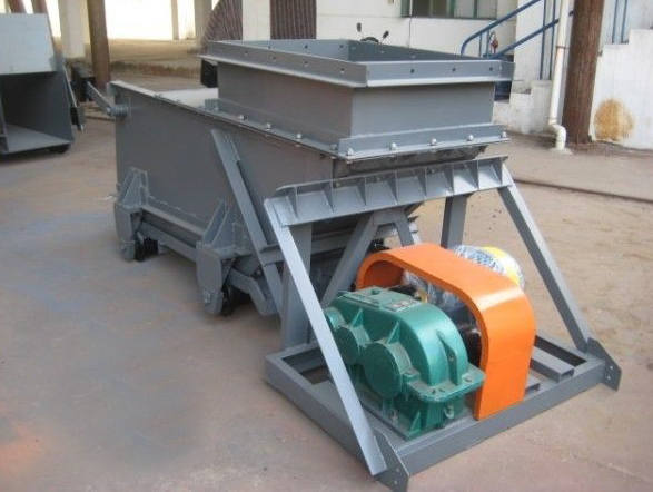 往复式给煤机由机架、底板(给煤槽)、传动平台、漏斗、闸门、托辊等组成。当电机开动后经弹性联轴器、减速机、曲柄连杆机构拖动倾料5°的底板在辊上作直线往复运动,煤均匀地卸到其他设备上。