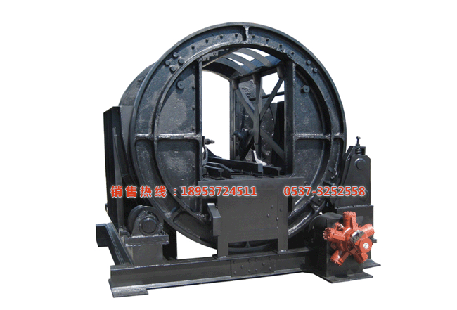 4、接通电磁铁电源,打开刹车杠杆,翻笼开始转动;