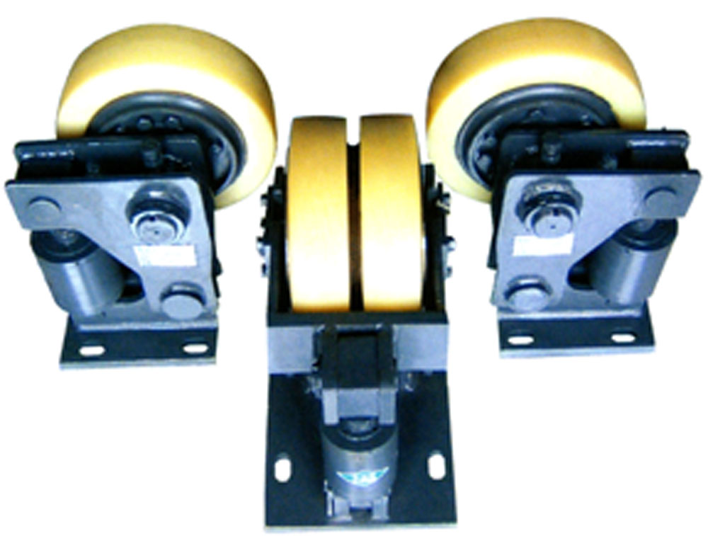 滚轮罐耳(又名滚轮导向装置)是提升容器(罐笼或萁斗)的组成部分,它起导向和缓冲作用。是确保提升容器沿导轨平稳运动的关键所在。本公司开发、生产的KST-LWG“组合钢罐道 滚轮罐耳”有效地满足了此要求。